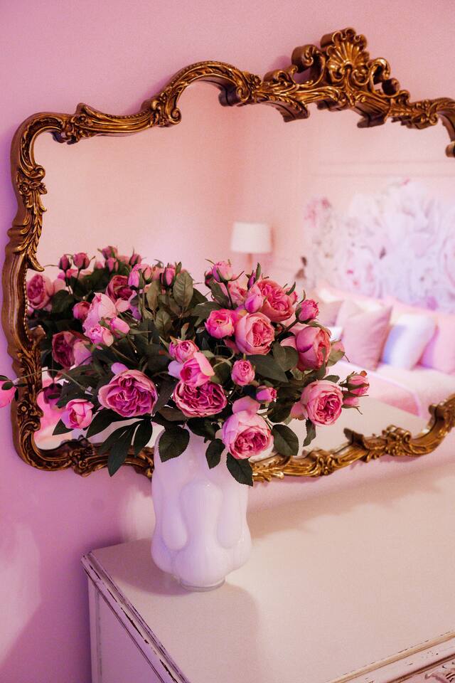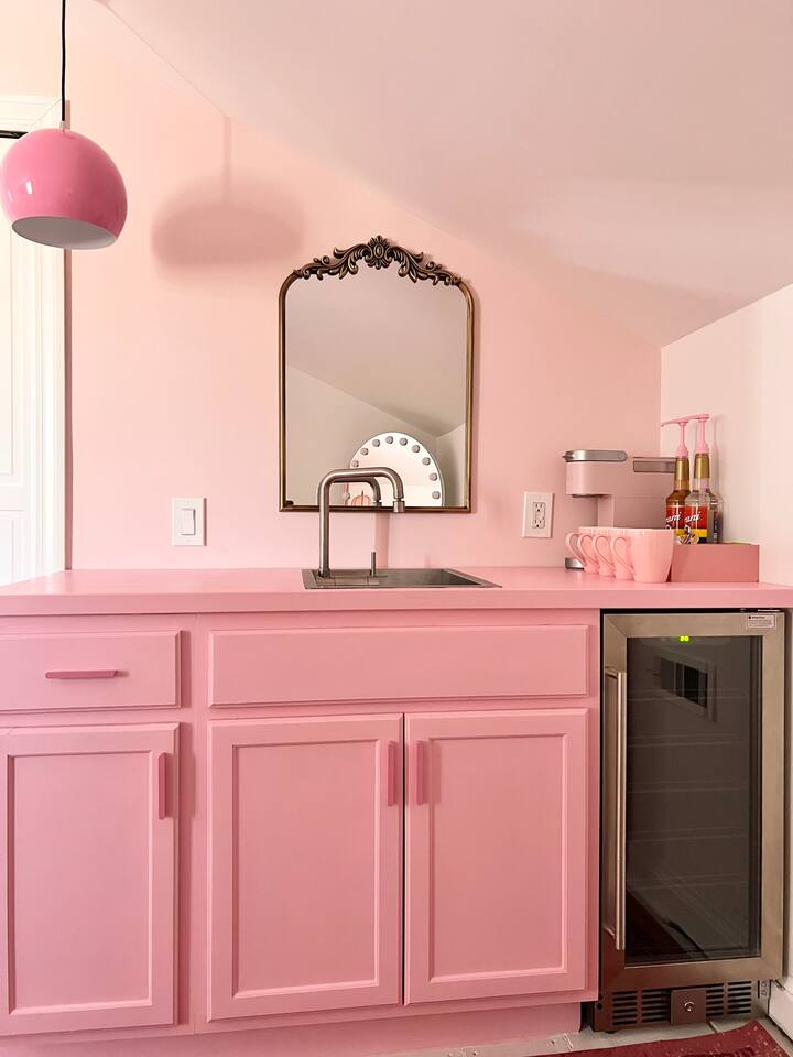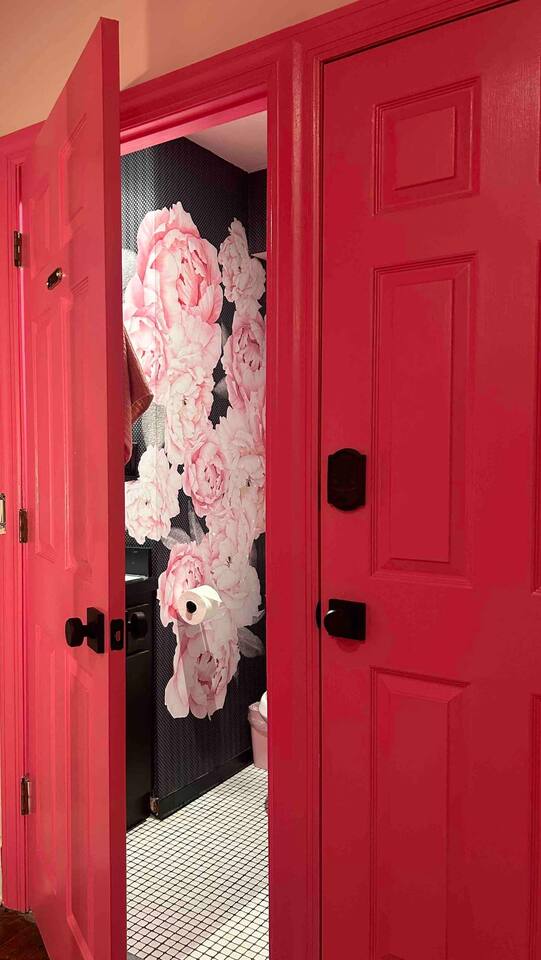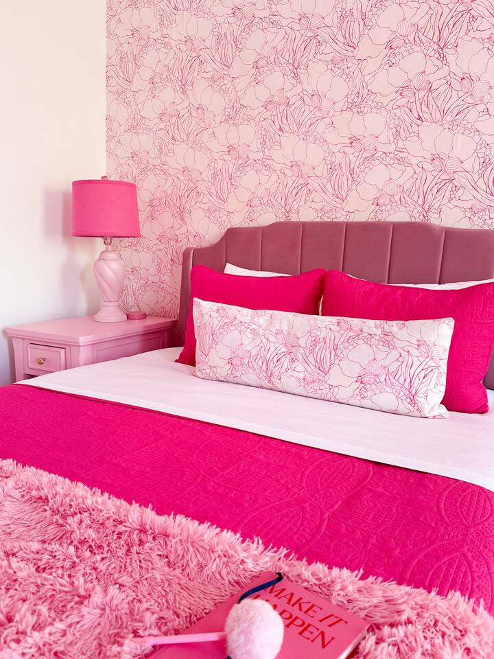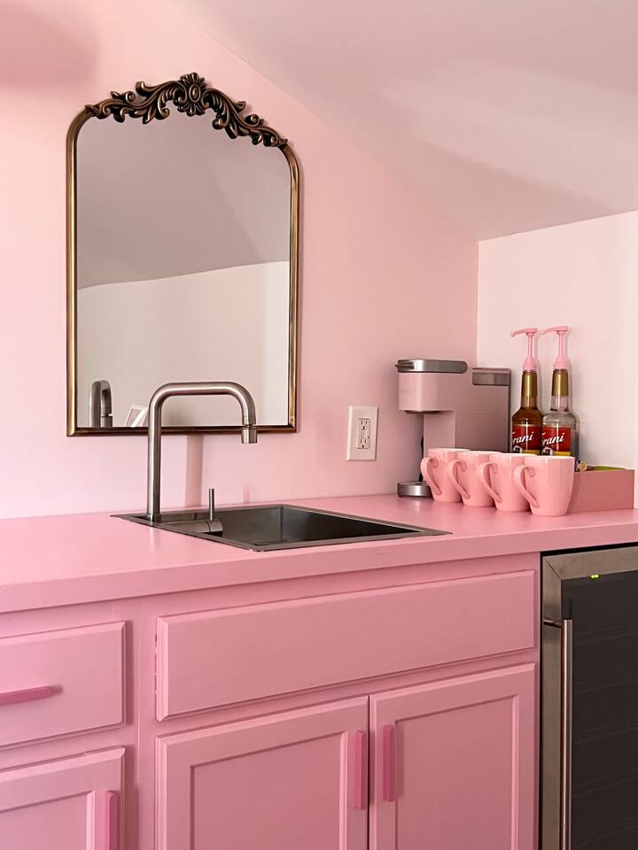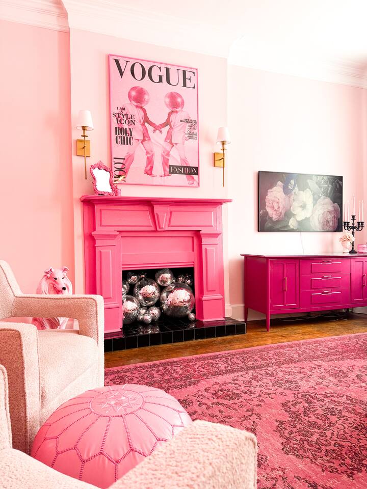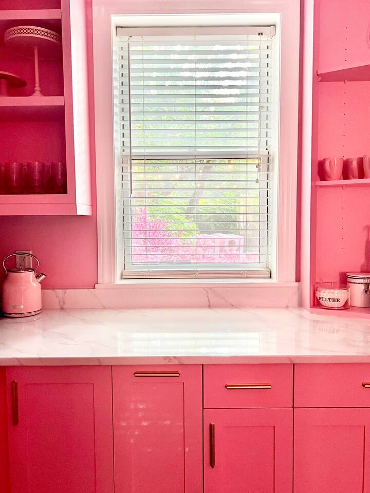 This 3-story private home is a gem! PINK POSH PLACE is a luxurious and spacious home drenched in natural light and shades of pink! There is plenty of room for everyone to spread out. BEDROOMS: Three large bedrooms are all located on the top two floors. There are lots of places to get ready with multiple make-up mirrors throughout. - 1st bedroom has a king-size bed and a lovely private deck that leads to the magical courtyard. - 2nd bedroom has two queen-size beds. There is a cheetah chase lounge and reading nook outside of this room. - 3rd bedroom is the entire third floor, consisting of two queen beds, a full bathroom, plus a coffee and wet bar! Total slumber party dream!! BATHROOMS: - 1st Full Bathroom is XL and is located on the second floor with a large shower. - 2nd Full Bathroom is on the 3rd floor with a shower. - 1/2 bathroom is on the main level at the end of the hall. PINK KITCHEN: The fully stocked pink kitchen has all stainless appliances, pink cookware, bakeware, a variety of glassware, all the pink dishes and things you would need, plus a large pink coffee bar (includes Kuerig K-cups, drip coffee, and a French press)! We are located only a few footsteps to fun restaurants, cafes, and bars! This location is serioulsy prime and ready for you to make some amazing memories! No "parties" allowed. But it's the perfect space to hang out and enjoy with your group! Please let us know what your plans are for your stay when you are booking the space. We also rent this home for photoshoots, content creation rentals, and very intimate events. (MUST BE APPROVED WHEN BOOKING YOUR RESERVATION)