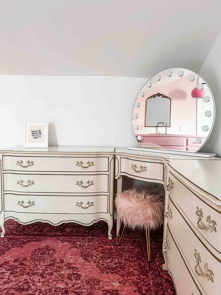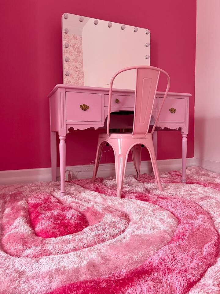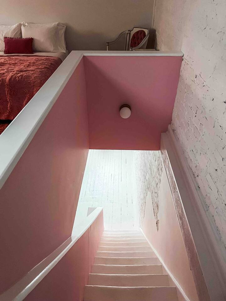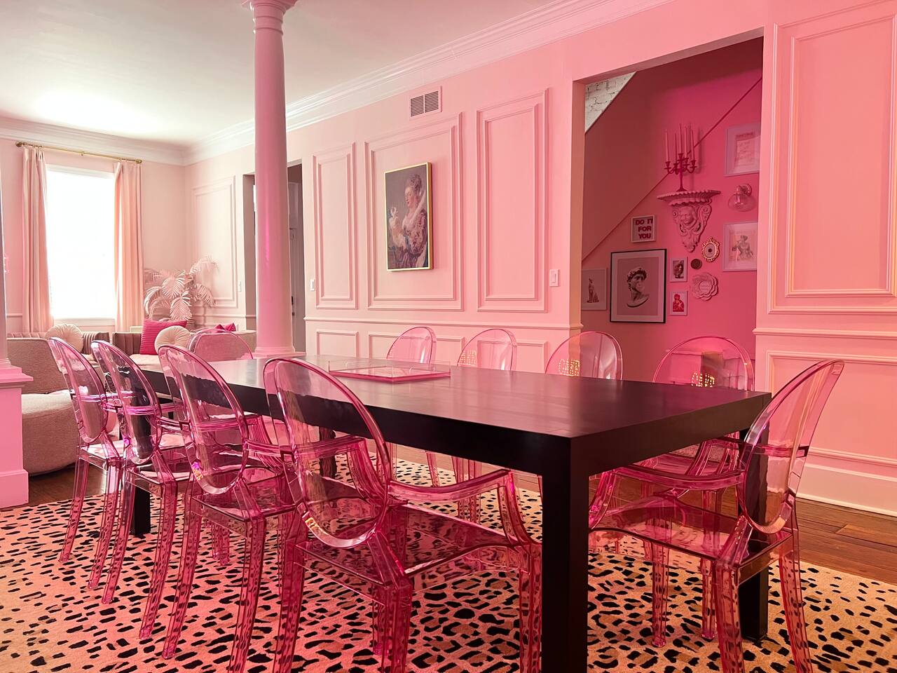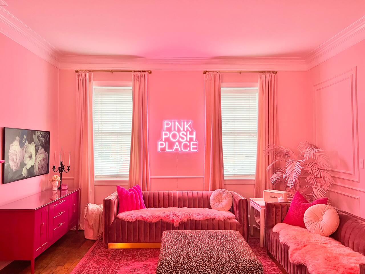 This 3-story private home is a gem! PINK POSH PLACE is a luxurious and spacious home drenched in natural light and shades of pink! There is plenty of room for everyone to spread out. BEDROOMS: Three large bedrooms are all located on the top two floors. There are lots of places to get ready with multiple make-up mirrors throughout. - 1st bedroom has a king-size bed and a lovely private deck that leads to the magical courtyard. - 2nd bedroom has two queen-size beds. There is a cheetah chase lounge and reading nook outside of this room. - 3rd bedroom is the entire third floor, consisting of two queen beds, a full bathroom, plus a coffee and wet bar! Total slumber party dream!! BATHROOMS: - 1st Full Bathroom is XL and is located on the second floor with a large shower. - 2nd Full Bathroom is on the 3rd floor with a shower. - 1/2 bathroom is on the main level at the end of the hall. PINK KITCHEN: The fully stocked pink kitchen has all stainless appliances, pink cookware, bakeware, a variety of glassware, all the pink dishes and things you would need, plus a large pink coffee bar (includes Kuerig K-cups, drip coffee, and a French press)! We are located only a few footsteps to fun restaurants, cafes, and bars! This location is serioulsy prime and ready for you to make some amazing memories! No "parties" allowed. But it's the perfect space to hang out and enjoy with your group! Please let us know what your plans are for your stay when you are booking the space. We also rent this home for photoshoots, content creation rentals, and very intimate events. (MUST BE APPROVED WHEN BOOKING YOUR RESERVATION)