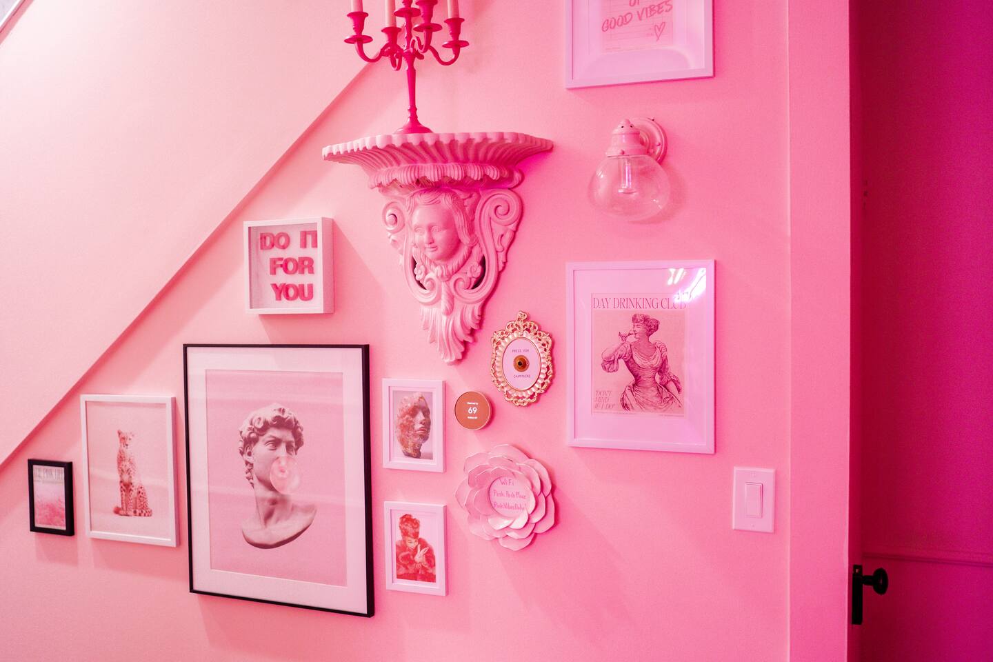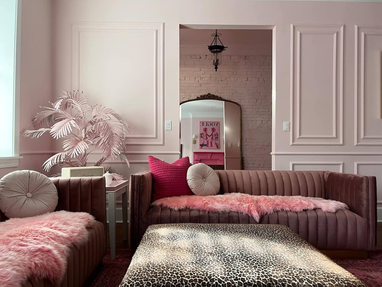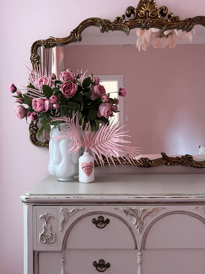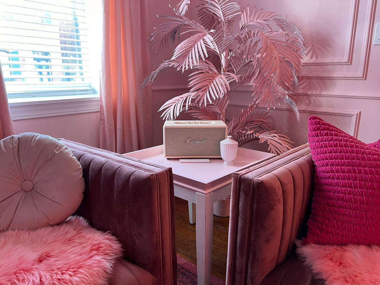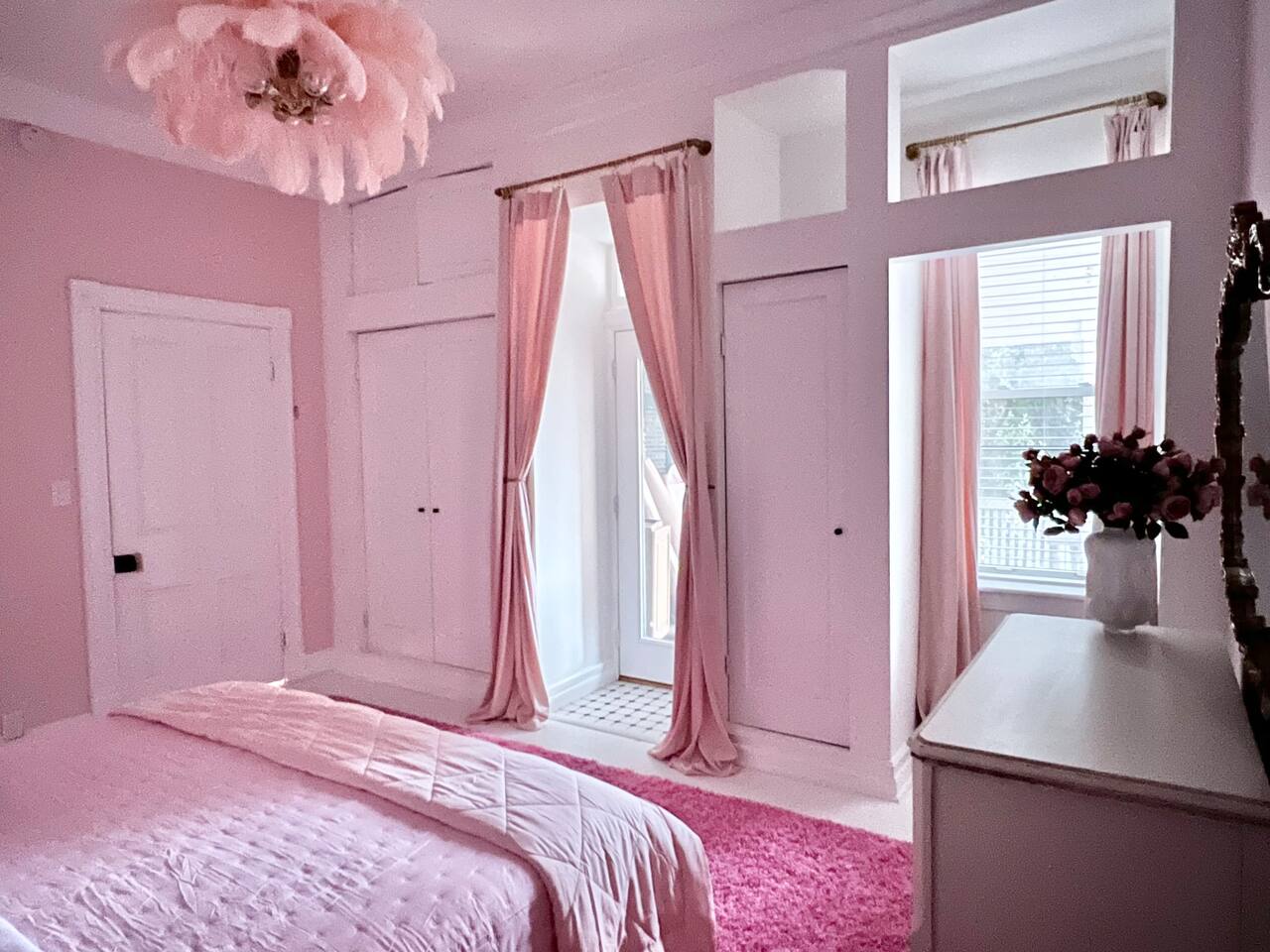 This 3-story private home is a gem! PINK POSH PLACE is a luxurious and spacious home drenched in natural light and shades of pink! There is plenty of room for everyone to spread out. BEDROOMS: Three large bedrooms are all located on the top two floors. There are lots of places to get ready with multiple make-up mirrors throughout. - 1st bedroom has a king-size bed and a lovely private deck that leads to the magical courtyard. - 2nd bedroom has two queen-size beds. There is a cheetah chase lounge and reading nook outside of this room. - 3rd bedroom is the entire third floor, consisting of two queen beds, a full bathroom, plus a coffee and wet bar! Total slumber party dream!! BATHROOMS: - 1st Full Bathroom is XL and is located on the second floor with a large shower. - 2nd Full Bathroom is on the 3rd floor with a shower. - 1/2 bathroom is on the main level at the end of the hall. PINK KITCHEN: The fully stocked pink kitchen has all stainless appliances, pink cookware, bakeware, a variety of glassware, all the pink dishes and things you would need, plus a large pink coffee bar (includes Kuerig K-cups, drip coffee, and a French press)! We are located only a few footsteps to fun restaurants, cafes, and bars! This location is serioulsy prime and ready for you to make some amazing memories! No "parties" allowed. But it's the perfect space to hang out and enjoy with your group! Please let us know what your plans are for your stay when you are booking the space. We also rent this home for photoshoots, content creation rentals, and very intimate events. (MUST BE APPROVED WHEN BOOKING YOUR RESERVATION)