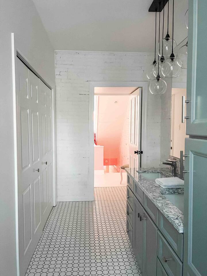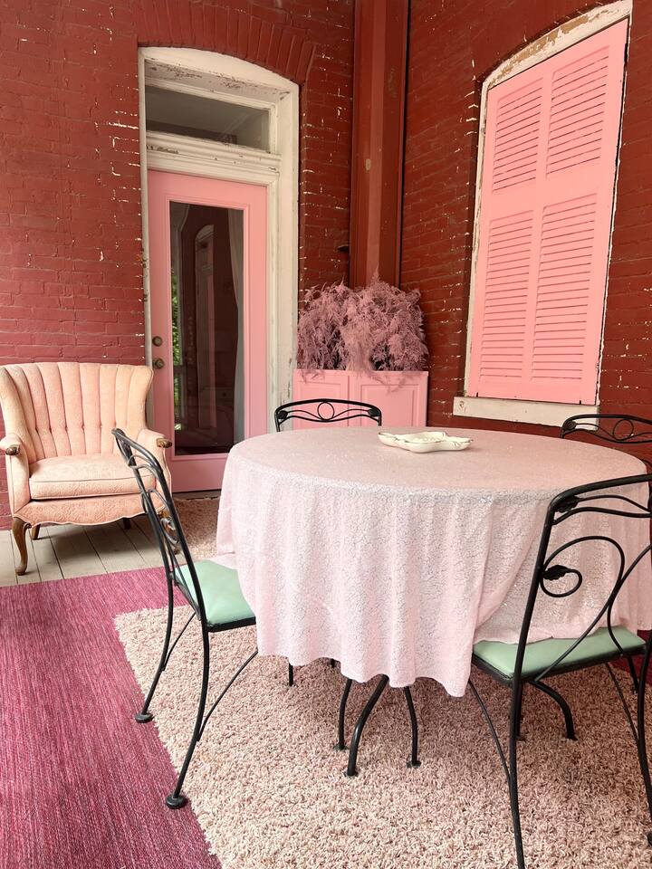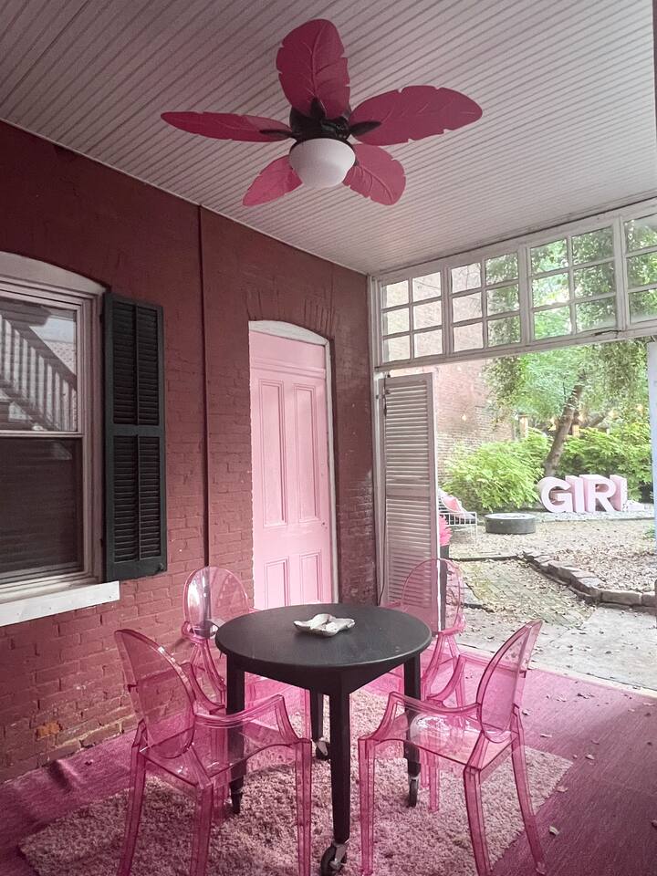 PINK designer home in an unbeatable location! Insta-worthy, unique, and elegant style with a flair that will have you feeling fabulous during your stay here! Natural light & good vibes flow throughout this historic 3-story home! The large private courtyard & deck are magical, with plenty of seating areas for entertainment. We are just footsteps to the best bars and restaurants in the Soulard neighborhood! Perfect for bachelorettes, bridal suites, birthdays, photoshoots, or a fun family getaway!